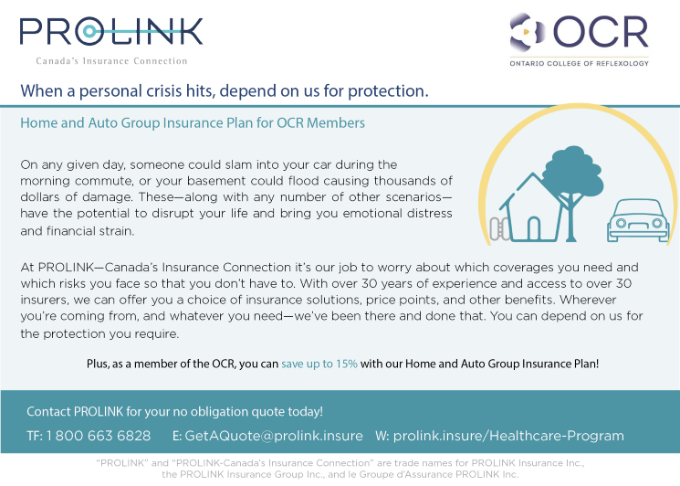 In conjunction with PROLINK, we are pleased to offer group rates for home and auto insurance needs to our Reflexologists, including students!